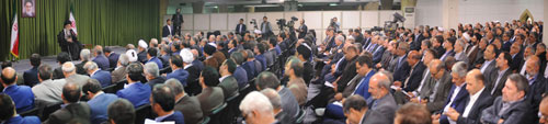 حضرت آیت الله خامنه ای با اشاره به تلاش دشمن برای استفاده از حربه اقتصاد به منظور ضربه زدن به نظام اسلامی، گفتند: اگر چه برخی ناشی گری ها انجام شد و برخی مواضع و صحبت های منفعلانه، دشمن را در استفاده از حربه تحریم، تشجیع کرد اما باید مشکلات اقتصادی به ویژه رکود و اشتغال حل شوند و صِرفِ صحبت، فایده ندارد.