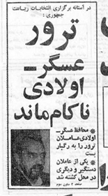 بسم الله الرحمن الرحیم - برادر ، عسگراولادی.خدای خدای بزرگ را سپاس میگویم که جان آن برادر مسلمان و مبارز را از سوء قصد خائنانه دشمنان اسلام و انقلاب اسلامی ایران نجات داد. دشمنان کور دل انقلاب اسلامی، باید بدانند که شهادت در راه خدا آرزوی ماست، زیرا که ما را هراسی از مرگ نیست. چرا که اطمینان داریم بدون ما نیز پرچم خونین اسلام و انقلاب را دستهای پر توان میلیونها مردم محروم و مستضعف میهن اسلامی سربلندتر و برافراشتهتر از پیش به اهتزاز در خواهد آورد و میلیونها دهان نوای قدسی و آسمانی «الله اکبر» را در چهار گوشه جهان طنین افکن خواهد ساخت . آمریکای جهانخوار و اذناب آن بدانند که مبارزه بیامان امت شهید پرور ما علیه ظلم و کفر و الحاد و استکبار جهانی تا محو کامل همه آثار شوم آن در سراسر جهان ادامه خواهد داشت و ترور شخصیتها که نشانه کامل ضعف و زبونی آنهاست، در عزم راسخ و تصمیم خلل ناپذیر امت مبارز و انقلابی ما کوچکترین تاثیری نخواهد داشت .
