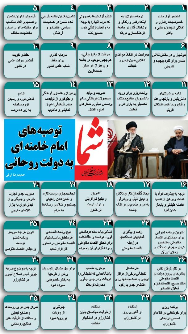 طرح/ توصیه های امام خامنه ای به دولت روحانی
