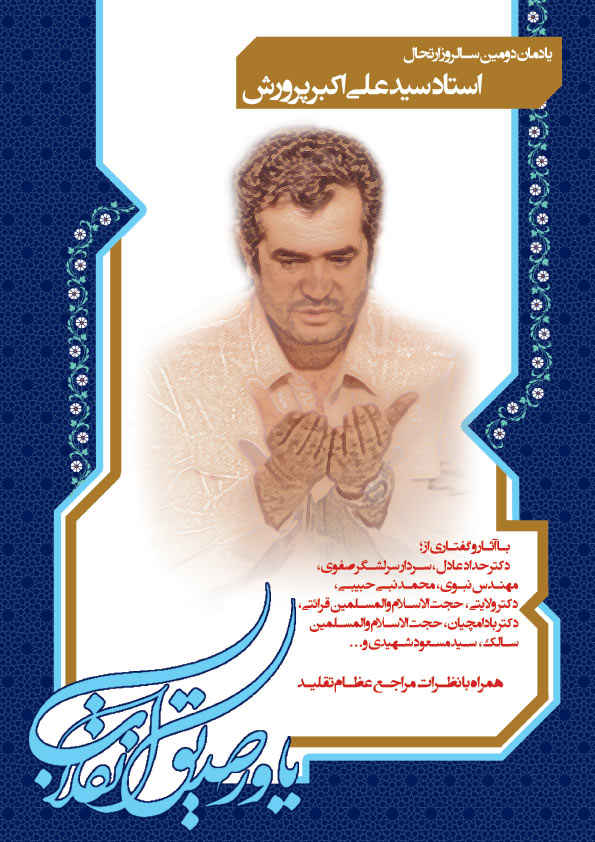 مراسم دومین سالگرد درگذشت استاد سید علی اکبر پرورش ، روز پنج شنبه سوم دی ماه از ساعت 15 تا 17 در خیمه حسینی گلستان شهدای اصفهان برگزار می شود.