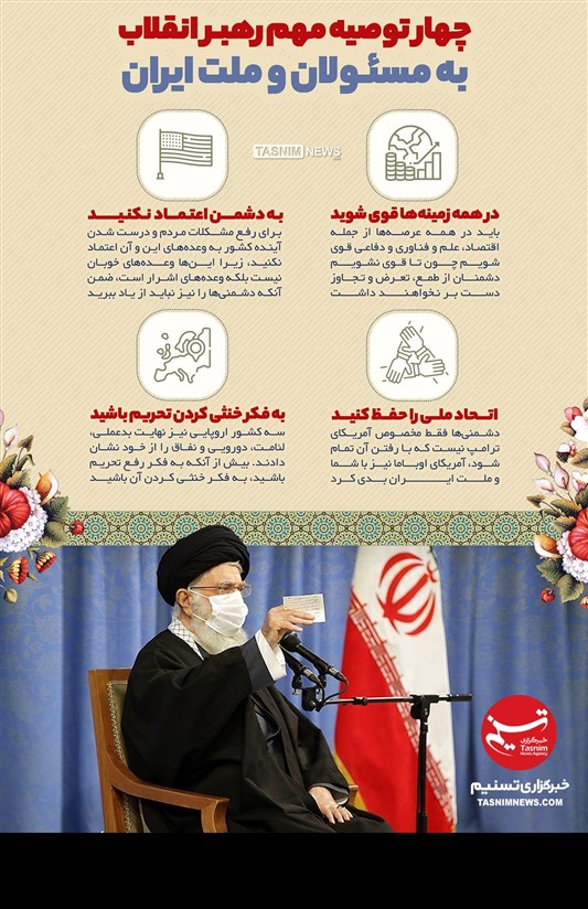 طرح/ چهار توصیه مهم امام خامنه ای به مسئولان و ملت ایران