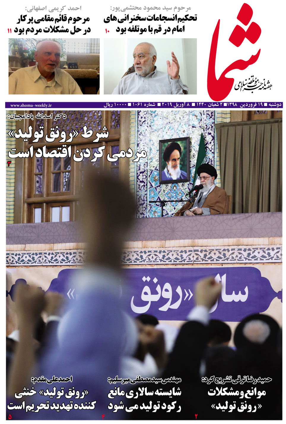 هفته نامه شما در تاریخ 19 فروردین 1398 به شماره 1061 منتشر گردید. برای دریافت فایل PDF آن اینجا