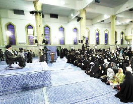 معظم له با استناد به تجربه موفق حضور زنان فرهیخته و مؤمن ایرانی در عرصه های مختلف علمی، سیاسی و مدیریتی افزودند: زن در محیط اسلامی، رشد علمی شخصیتی خلاقی، سیاسی می یابد و در اساسی ترین مسائل اجتماعی در صفوف مقدم قرار دارد اما همچنان «زن» باقی میماند و به این مسئله افتخار میکند.