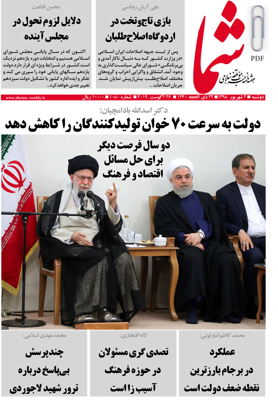 هفته نامه شما در تاریخ 4 شهریورماه 1398 به شماره 1080منتشر گردید. برای دریافت فایل PDF آن اینجا