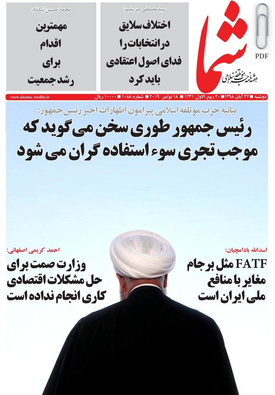 هفته نامه شما در تاریخ 27 آبان ماه 1398 به شماره 1088 منتشر گردید. برای دریافت فایل PDF آن اینجا (