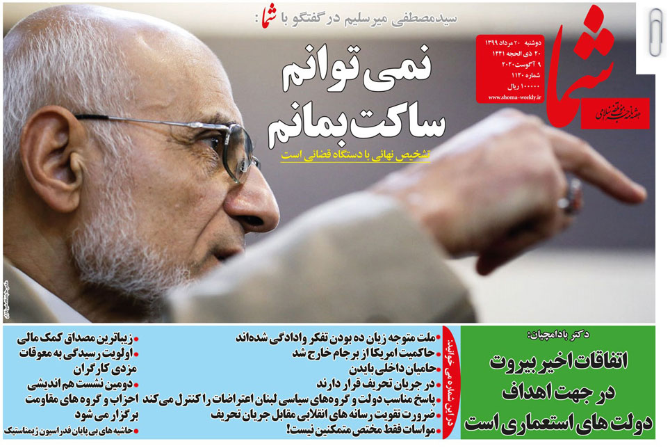 هفته نامه شما در تاریخ 20 مرداد ماه 1399 به شماره 1120 منتشر گردید. برای دریافت فایل PDF آن اینجا