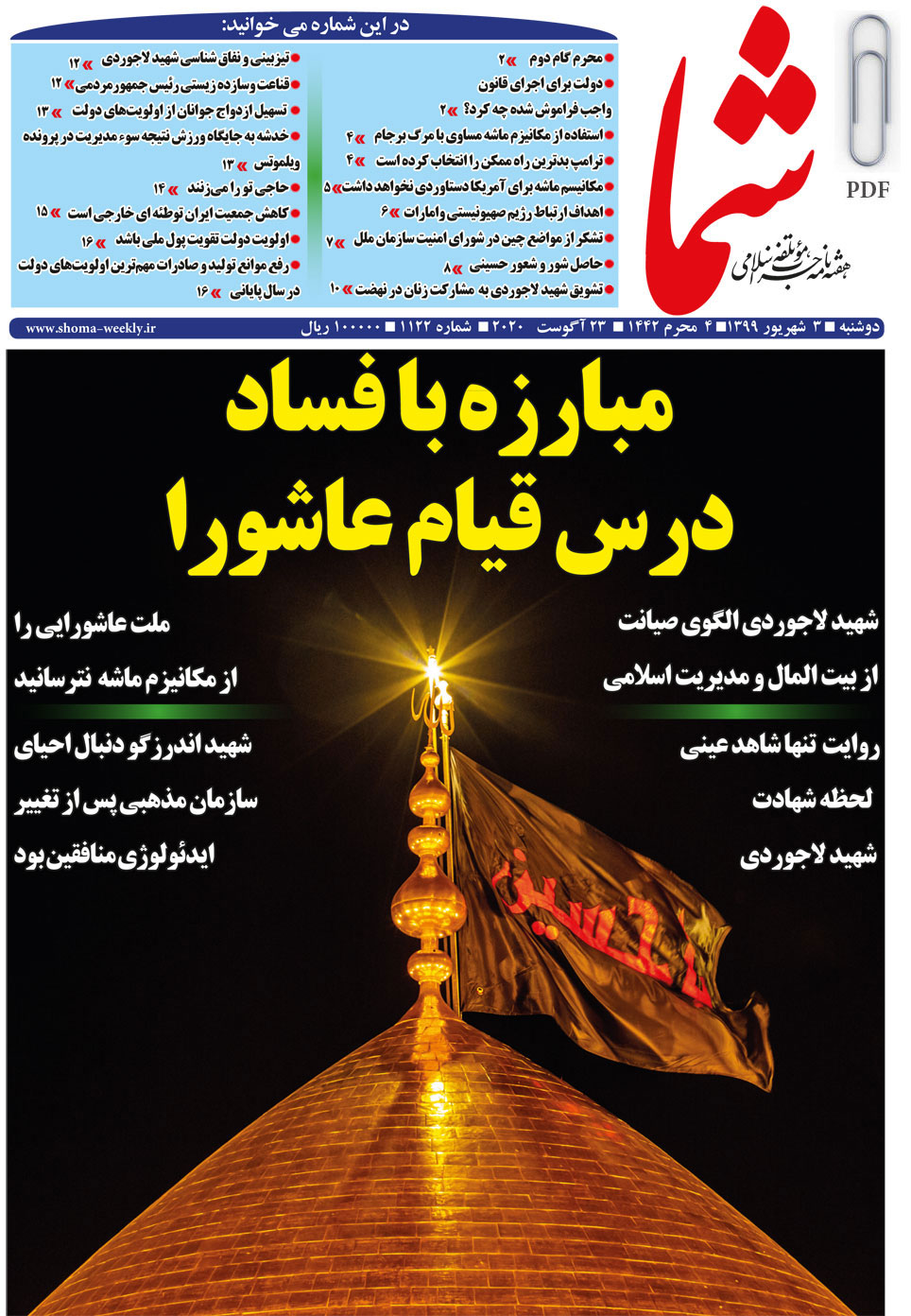 هفته نامه شما در تاریخ 2 7مرداد ماه 1399 به شماره 1122منتشر گردید. برای دریافت فایل PDF آن اینجا