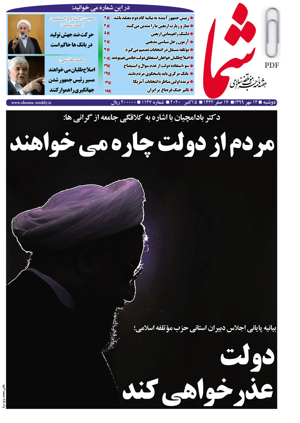 هفته نامه شما در تاریخ 14 مهر ماه 1399 به شماره 1127منتشر گردید. برای دریافت فایل PDF آن اینجا