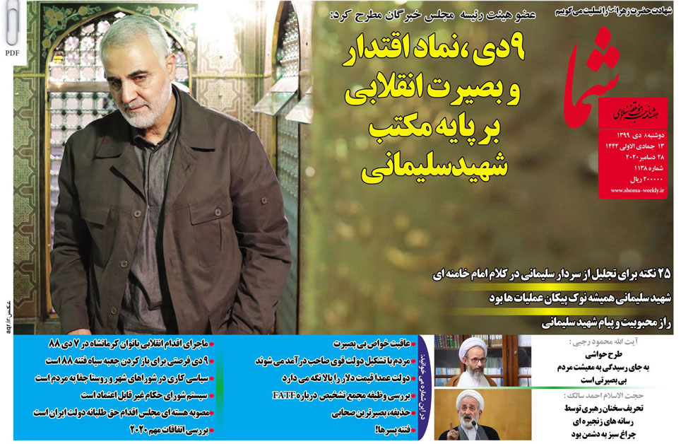 هفته نامه شما در تاریخ 8 دی ماه 1399 به شماره 1138 منتشر گردید. برای دریافت فایل PDF آن اینجا