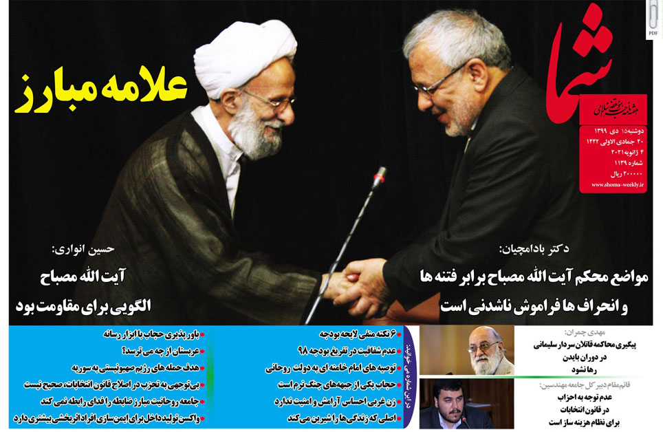 هفته نامه شما در تاریخ 15 دی ماه 1399 به شماره 1139 منتشر گردید. برای دریافت فایل PDF آن اینجا