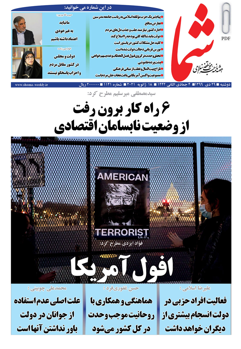 هفته نامه شما در تاریخ 29دی ماه 1399 به شماره 1141منتشر گردید. برای دریافت فایل PDF آن اینجا (