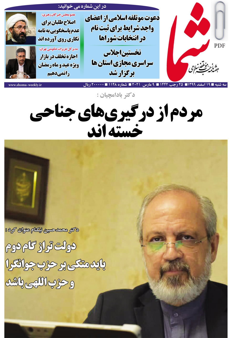 هفته نامه شما در تاریخ 19 اسفندماه 1399 به شماره 1148 منتشر گردید. برای دریافت فایل PDF آن اینجا
