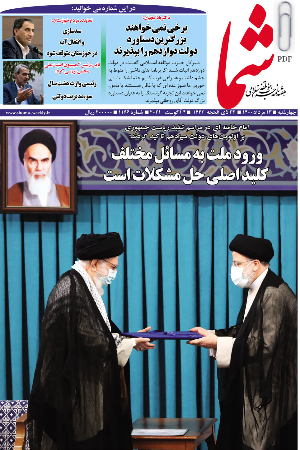 هفته نامه شما در تاریخ 13 مردادماه 1400 به شماره 1166 منتشر گردید. برای دریافت فایل PDF آن اینجا