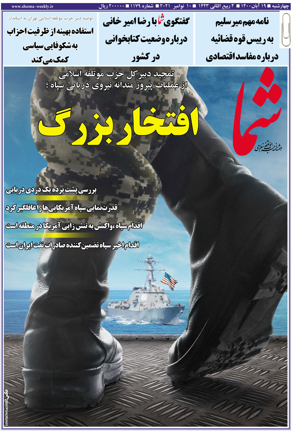 هفته نامه شما در تاریخ 19 آبان ماه 1400 به شماره 1179منتشر گردید. برای دریافت فایل PDF آن اینجا