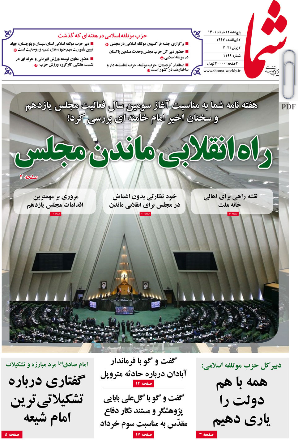 هفته نامه شما به شماره 1199 منتشر گردید. برای دریافت فایل PDF آن اینجا