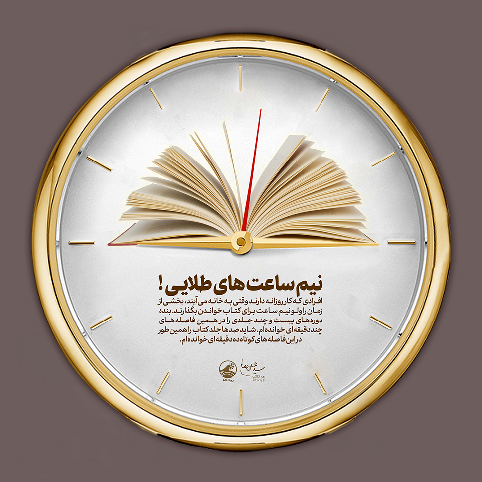 رهبر انقلاب: افرادی که کار روزانه دارند وقتی به خانه میآیند، بخشی از زمان را ولو نیم ساعت برای کتاب خواندن بگذارند. چقدر کتابها را در همین نیم ساعتها میشود خواند! بنده دورههای بیست جلدی و بیست و چند جلدی کتاب را در همین فاصلههای چنددقیقهای خواندهام. شاید صدها جلد کتاب را همینطور در این فاصلههای کوتاه ده دقیقهای خواندهام. بسیاری از افراد را هم میشناسم که این گونهاند. ۷۲/۲/۲۱